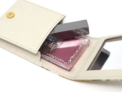 A mirror-equipped case that holds about three lipsticks—perfect for on-the-go touch-ups. The removable mirror allows for added versatility, letting you swap it out for a photo. Also great for travel-sized cosmetics, meds, contact lens supplies, earphones, and cards.