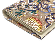 Opening the flap shows off the vibrant pattern. The front and back of the wallet are embossed separately on a single piece of bunko leather.