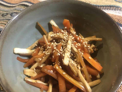 The flavor and consistency is also similar to white asparagus or baby corn, making it delicious tempura-fried, stir-fried, or stewed. It’s also low in bitterness, so it can be eaten raw and is said to be good for detoxing.