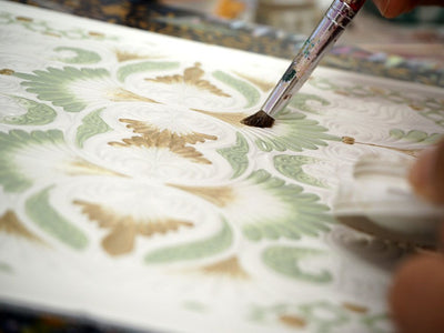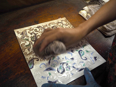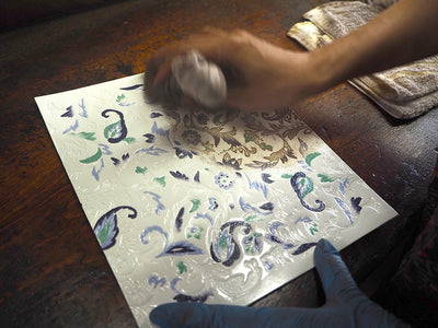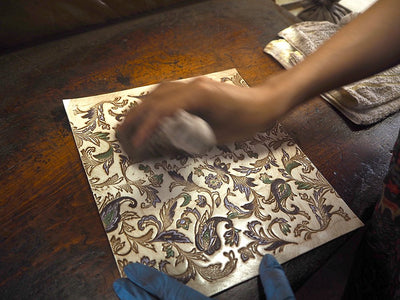 It is a painstaking process that requires the practiced hands of a skilled artisan. Everything must be just right—from the temperature and the humidity to the speed at which they work. The antiqued look and the warm outlines it creates are not effects that can be simply recreated with printed ink.