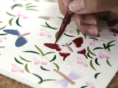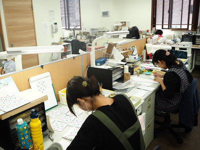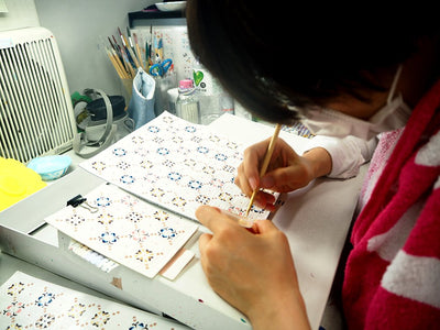Some of our coloration artisans work out of their own private workshops, while others are staff members who work out of our Mukojima workshop. Each one carefully applies color one brushstroke at a time.